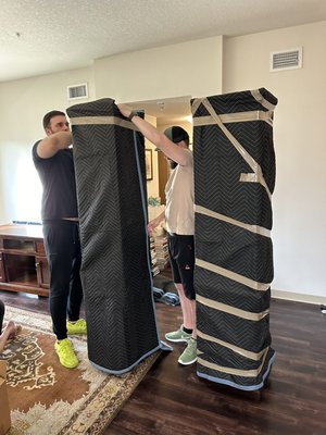 They wrapped our kitchen table with a moving blanket to protect it from scratching and also helped us put it together at the new house.